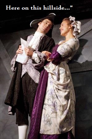 The next day, the school teacher Ichabod Crane, is courting Katie Van Tassel Here on This Hillside who laments Ichabod's interest in telling his stories of goblins and in a life of leisure, rather than in being a succesful teacher. Hearing the school bell ring, Ichabod runs off to the schoolhouse, late for class - telling Katie he will see her at the party later that night.