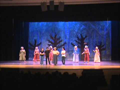 The show begins with a candle-lit procession through a dark forest as a somber crowd of people sing What's Become of Ichabod Crane? As the song ends, we are in a current-day town where three kids Charlie, Irving, and Amy - are just finishing up their trick-or-treating.